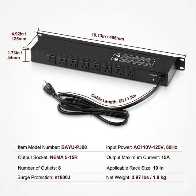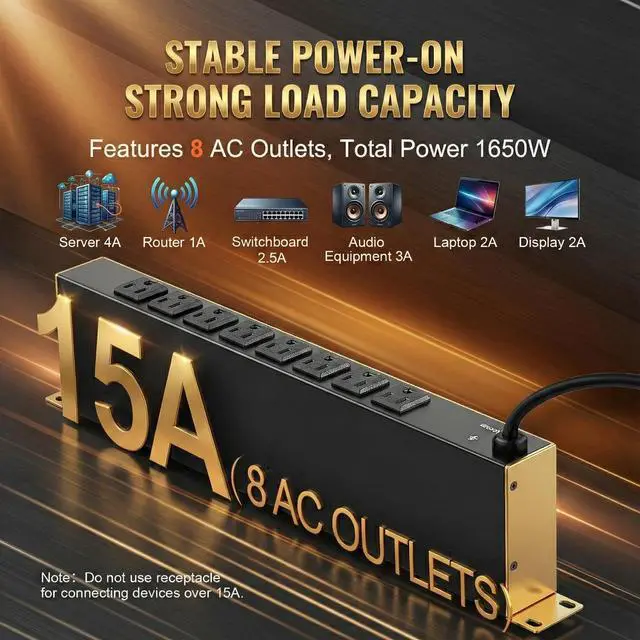 Superior Conductivity and Stability with 14AWG Wire At the heart of this PDU is high-quality 14AWG copper wiring. Unlike standard power strips, this heavy-duty gauge is specifically chosen for its ability to handle high current loads with minimal resistance. This results in less energy loss to heat and ensures that your high-power devices receive clean, stable power transmission tailored for demanding operational needs.