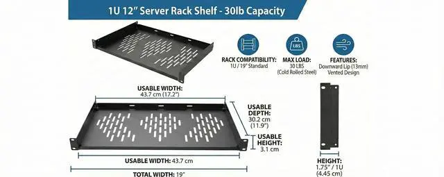 Organize your server room, studio, or home lab efficiently with our 12-Inch Deep 1U Vented Server Rack Shelf (2-Pack). Designed for IT professionals and audio engineers, this cantilever tray provides a stable platform for non-rack mountable equipment within standard 19-inch enclosures.