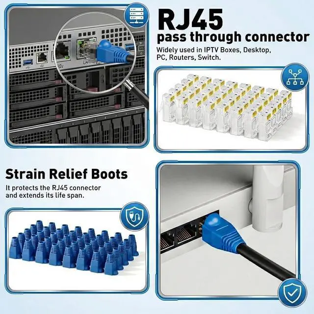 | Included Plugs | 50 x Cat6 Pass-Through Connectors |