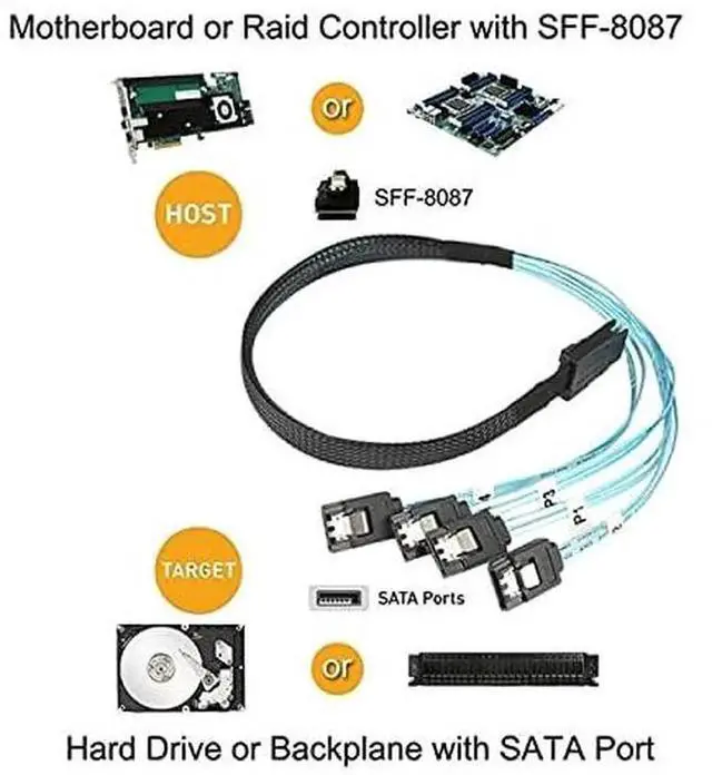 Internal Mini SAS SFF-8087Host to 4 SATA 7pin Target Hard Disk 6Gbps Data Server Raid Cable