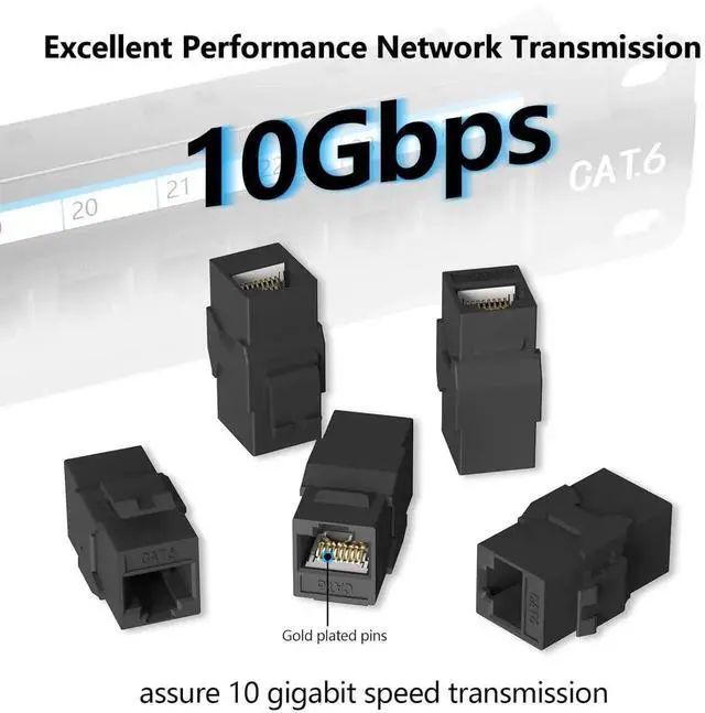 High-Speed 10Gbps Support: Supports up to 10Gbps Ethernet speeds, compatible with Cat6, Cat5e, and Cat5 cables. Gold-plated contacts ensure stable and fast data transmission for demanding networks.
