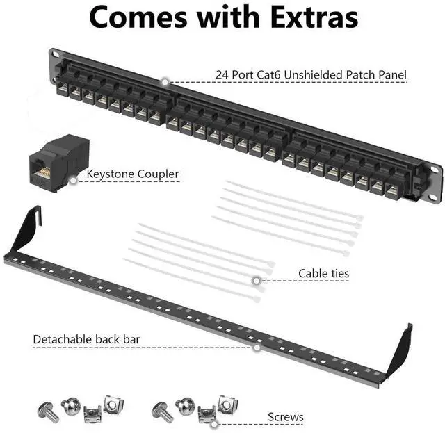 Tool-Free Installation: Preloaded with 24 Cat6 RJ45 keystone couplers, this patch panel requires no punch down tools simply plug cables into the couplers for a quick and hassle-free setup.