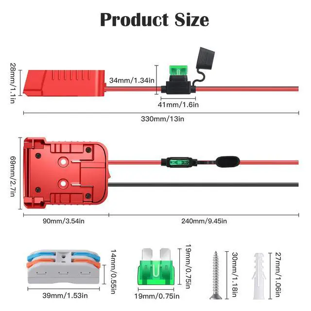 We upgrade the line protection device of the battery adapter. Added switch ensures you can turn on&off the battery easily, equipped 30Amp fuse protect battery devices from overpower damage, fuse holder rubber cap fits on tightly to protect blade fuse inside. In addition we equipped a wiring terminals, convenient for you to connect the power cord of the device with the power cord of the adapter faster and better