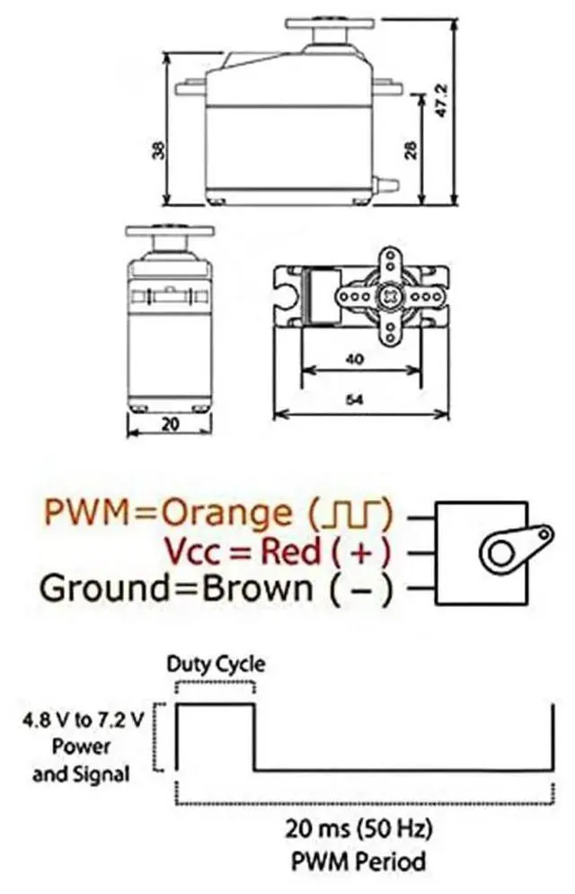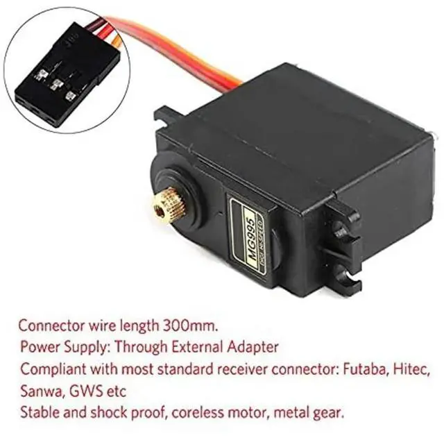 Power Supply: Through external adapter, connector wire length 300mm. Stable and shock proof, motor, metal gear.
