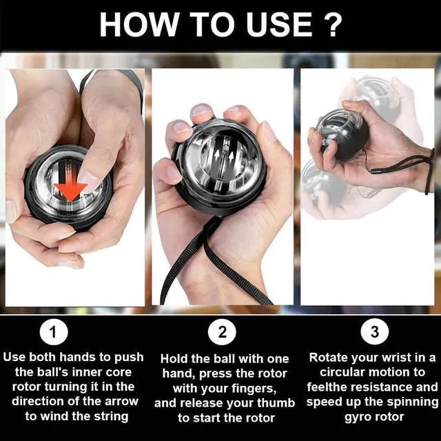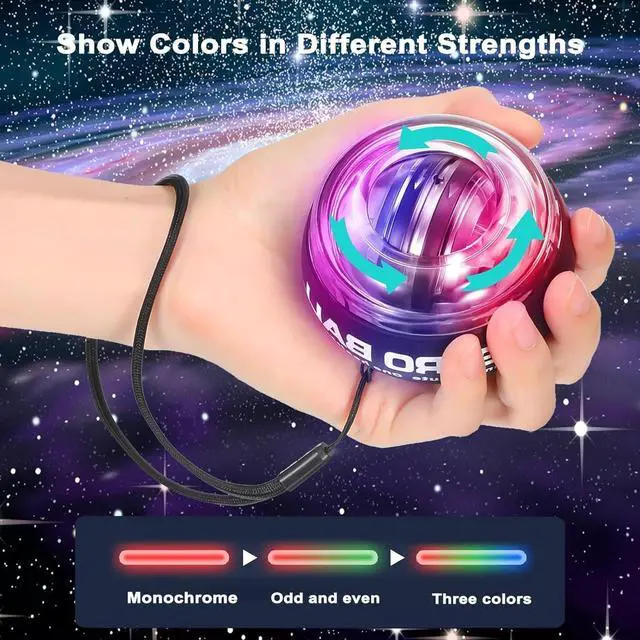 Note: This torque ball is manually started, not automatically started. The colored LED lights will automatically illuminate according to the ball's rotation; no charging or on/off switch is required. The ball needs to be wound to start rotating. After starting, the resistance of the ball will be determined by your rotation speed; the faster the rotation, the greater the resistance. When you stop rotating, the ball will not store power and will gradually stop. If your thumb is injured or unable to exert force, please purchase with caution.