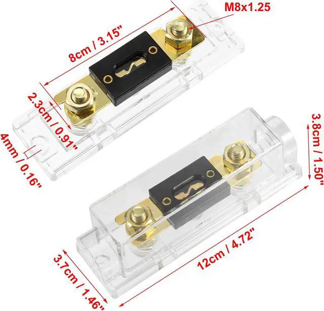 • Package Includes: 1 x Fuse Holder, 2 x 50A ANL Fuse. Dimension: Fuse Size: 8x2.3x0.8cm / 3.15"x0.91"x0.31"(L*W*H), Total Size: 12x3.7x3.8cm / 4.72"x1.46"x1.50"(L*W*H)