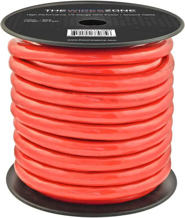 1/0 Gauge 50ft OFC Power Cable Oxygen-Free Copper Ground Wire 1/0 AWG 50' Red