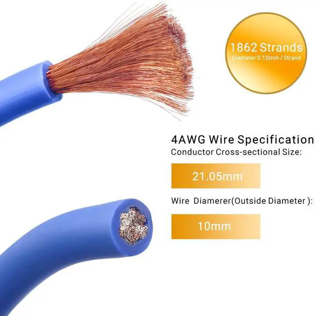 - 17ft (5.5 meters) Premium Frosted Blue 4 Gauge power wire with ring terminal provides optimal power transfer