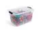 - Closes securely with the handles attached to the base to keep contents contained, dry and dust-free