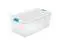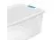 This container can be opened with one hand - the second latch acts as a handy hinge. The clear base is great for quickly viewing contents and the recessed lid makes it great for stacking. With a 106-quart capacity, this box solves all kinds of storage dilemmas.
