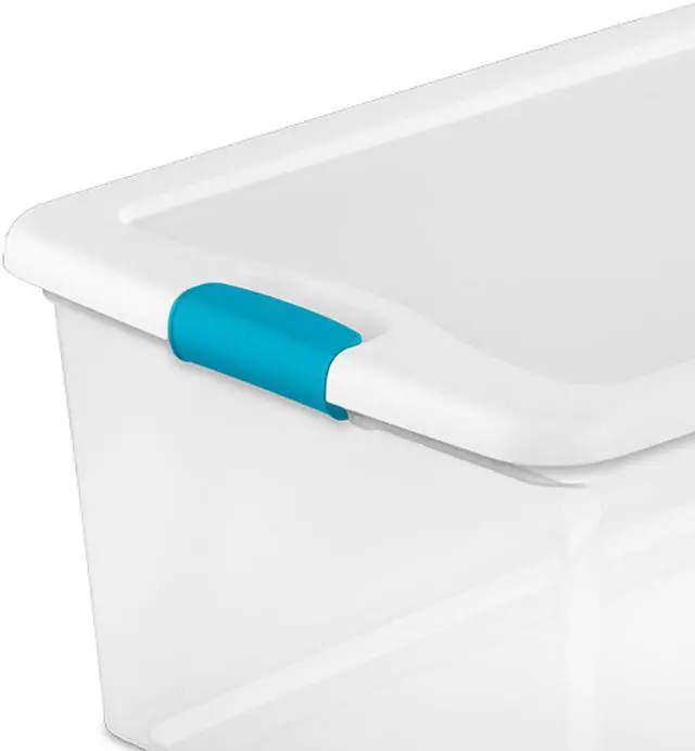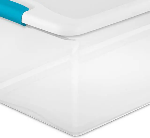 - Color: Clear with white lid and blue latches