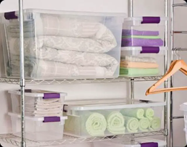 - Linens, towels and other bathroom or laundry supplies can be neatly contained so they are easily found when needed.