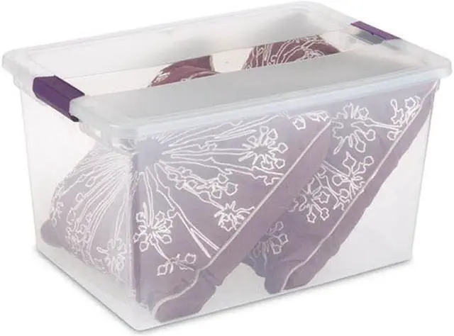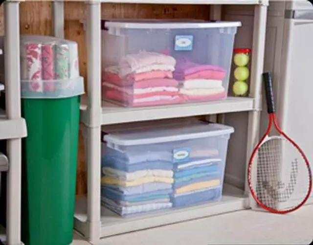 - The large capacity of this clear storage box makes organizing sporting equipment in the garage easy and allows items to be found at a moment's notice.