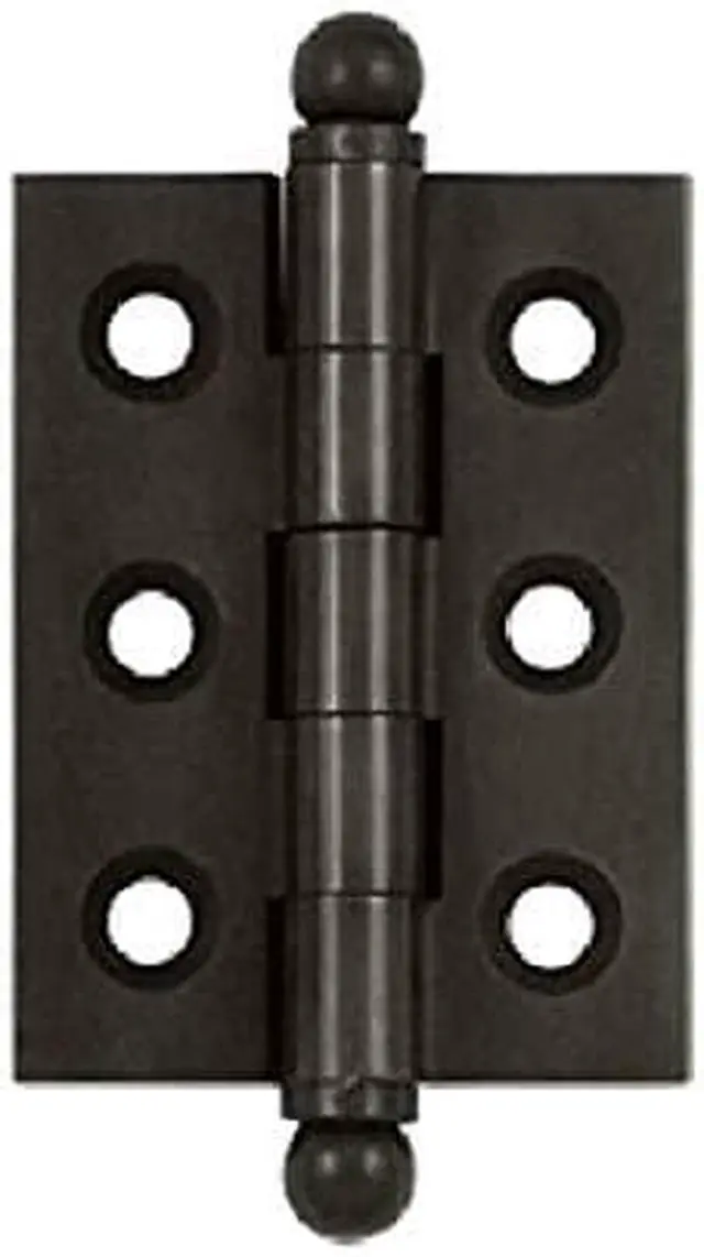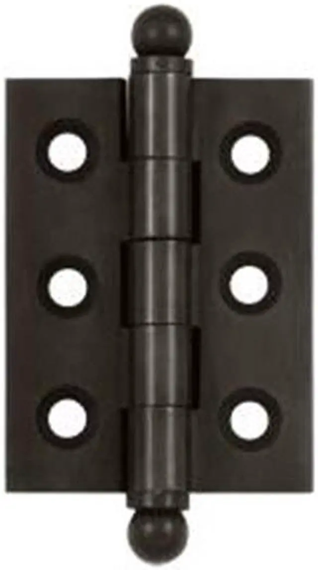 A good selection of Hinges- Bolts- stops- including Kitchen and Bath hardware built with continuous improvement in design has resulted in quality products which last a long time. The products are developed after a good deal of research in order to ensure that the best of material is used and is weather proof and corrosion proof and is ideal for any environment. FeaturesSolid Brass 2- x 1-1/2- Cabinet Hinge- with Ball TipsWood Screws #7 x 3/4-Square Corner HingeLimited 1 Year Mechanical and 1 Year Finish WarrantySpecificationsColor: Oil Rubbed BronzeMaterial: Solid BrassCase Quantity: 6Dimension: 2 x 1.5 in.