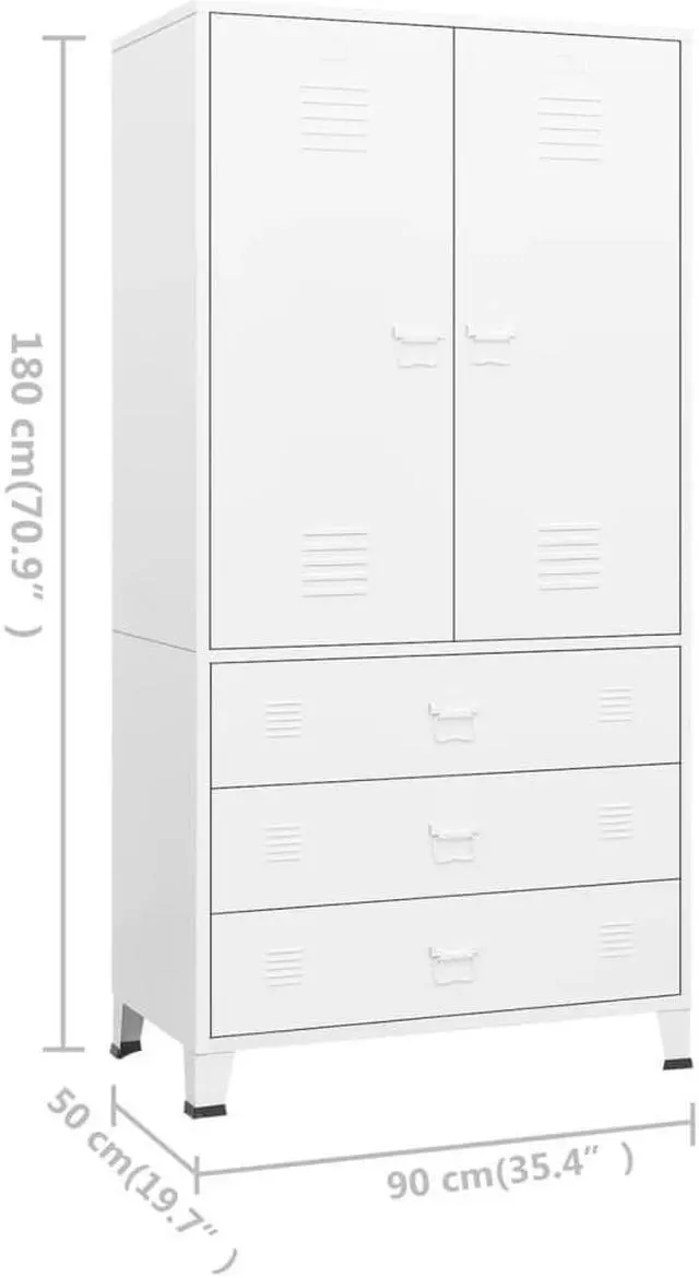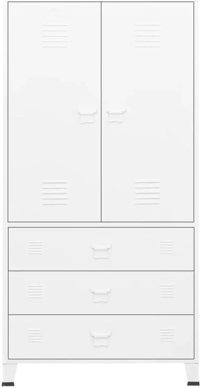 This wardrobe is made of metal, making it durable as well as easy to clean. It has 2 shelves and and 1 cloth hanger. This clothing cabinet provides large compartments, which offer you ample storage space both for your longer outfits and other folded clothes or accessories, such as sweaters, jeans, hats, hand bags, etc. With name tag holders and air vents, this cabinet allows you to neatly sort your items and underline the industrial look. Additionally, it is also easy to clean with a damp cloth.