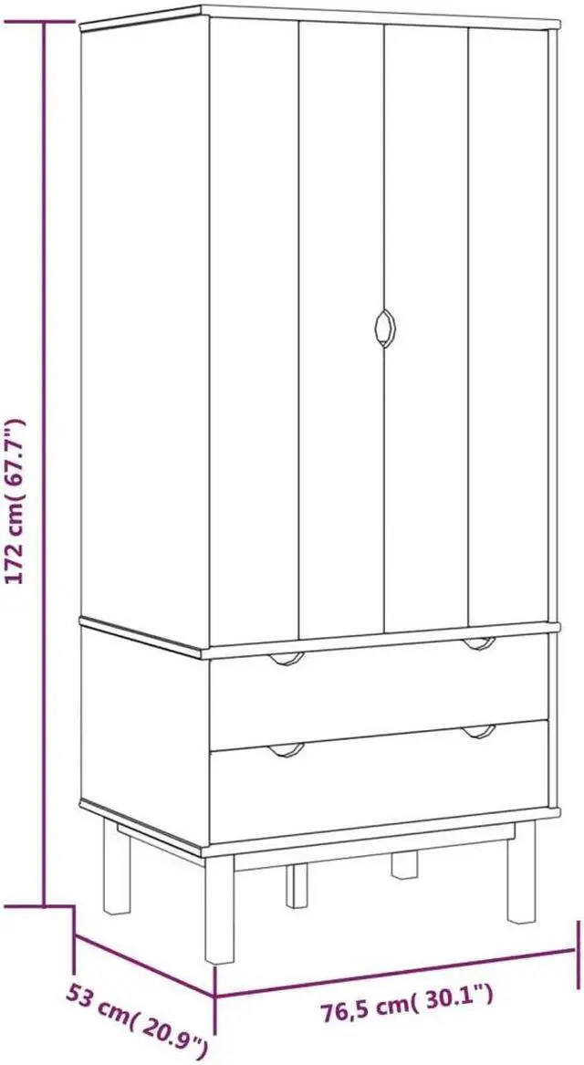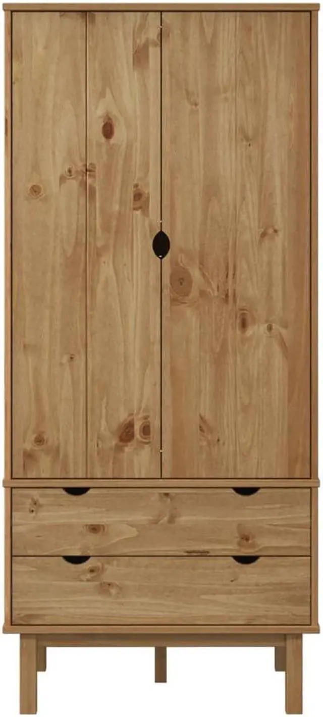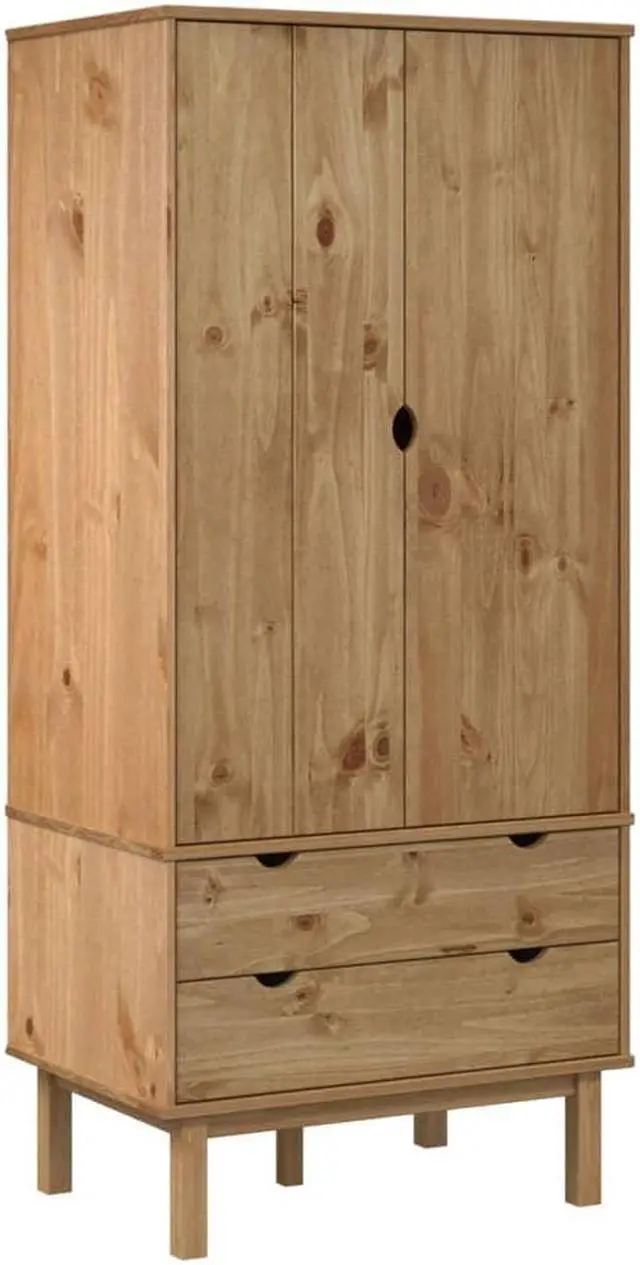 This classic wooden wardrobe, featuring a Scandinavian design, offers ample storage space to keep your clothes, shoes and accessories neatly organized.