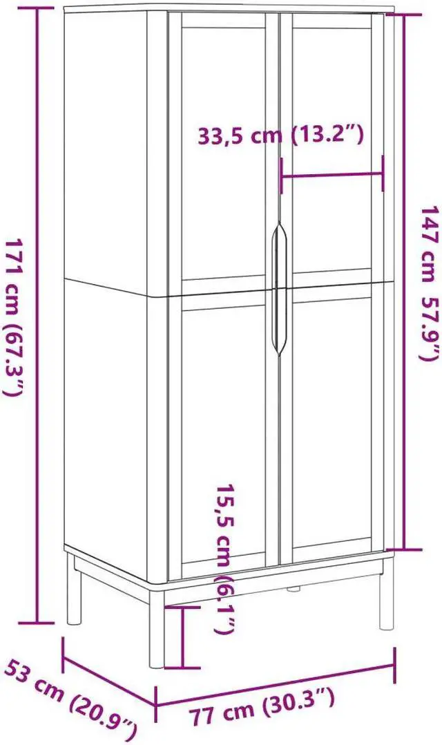Dimensions: 30.3" x 20.9" x 67.3" (W x D x H)