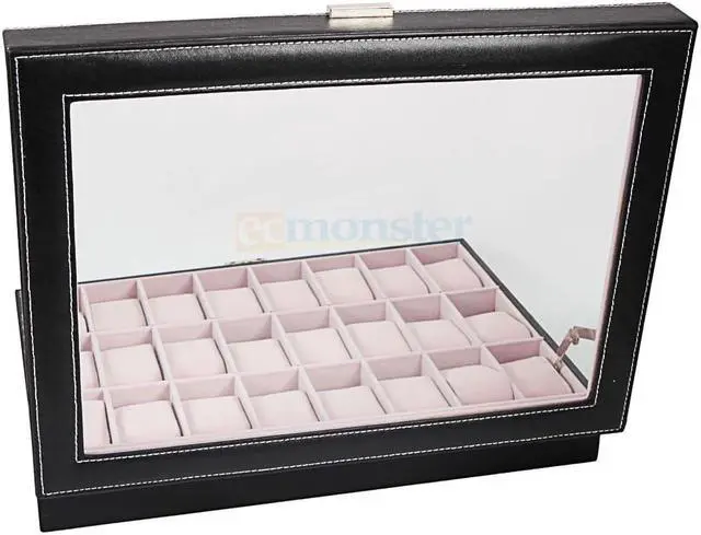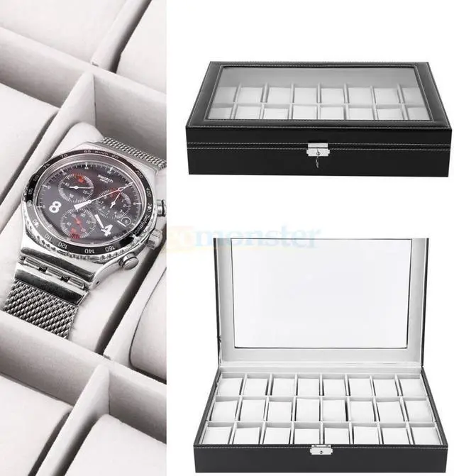 Large 24 Slot Wrist Watch Box Leather Display Case Organizer Jewelry Storage