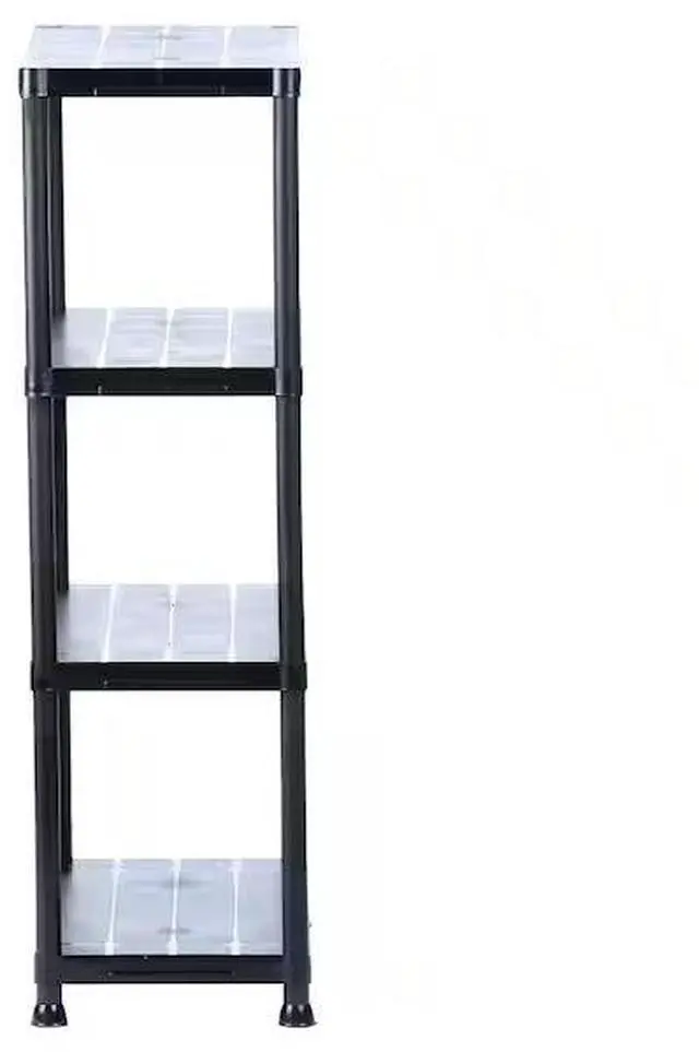 The HDX 4-Shelf Black Plastic Storage Shelving Unit offers additional storage space for your utility room, pantry, garage or closet. Featuring 4 shelves to keep your items neat, organized and easily accessible, the unit is made from black resin material designed to resist rust, dents, stains and peeling. Non-adjustable for extra stability, each shelf holds up to 66 lbs. to support a variety of items from cans to books and more, and the compact design fits easily into small areas, perfect for maximizing corner space.