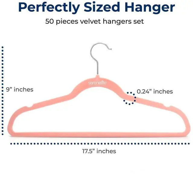 The SereneLife Velvet Hangers offer a perfect blend of functionality and style. This set of 50 non-slip velvet hangers is designed to keep your clothes secure, whether it's coats, shirts, or dresses. The 360° swivel hook allows for easy rotation, making hanging and accessing your garments a breeze. Their space-saving, ultra-thin design maximizes closet space without compromising on durability. The smooth velvet finish not only adds a touch of elegance but also ensures your clothes stay put. Whether you're organizing a large wardrobe or just need sturdy hangers for everyday use, these velvet hangers are a great choice.