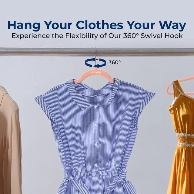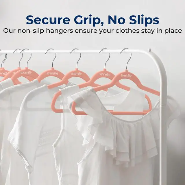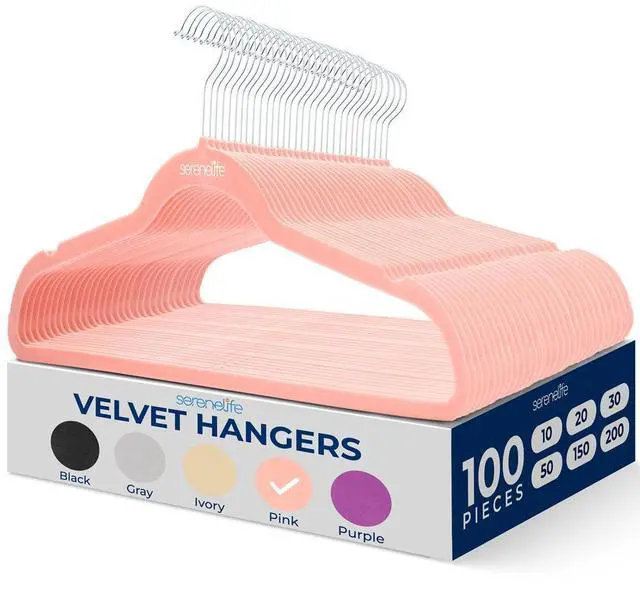 The SereneLife Velvet Hangers offer a stylish and functional solution for organizing your closet. This 100-piece set of non-slip velvet hangers features a 360° swivel hook for easy rotation and convenient hanging. The velvet-coated surface ensures your clothes stay securely in place, while the space-saving design helps you maximize closet space. These hangers are lightweight yet durable, making them perfect for organizing coats, shirts, dresses, and more. The smooth velvet finish comes in a vibrant pink color, adding a modern and elegant touch to your wardrobe.