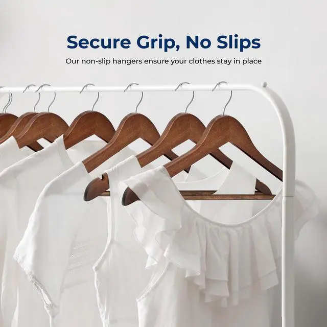 The SereneLife Wooden Hangers offer a practical and stylish solution for closet organization. This 80-piece set of solid wood hangers features a chrome 360° swivel hook, making it easy to hang and access your clothes. The notched design is perfect for securely hanging delicate garments like camisoles and jackets. The smooth finish with natural wood grain enhances your closets appearance, while the pants bar design ensures trousers stay in place. These hangers are space-saving, lightweight, and perfect for organizing coats, suits, dresses, shirts, and other clothing.