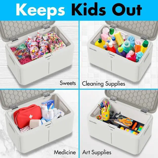 The SereneLife SLSBXN850GY Locking Storage Bin is built to safely secure your items with a built-in 4-digit combo lock and durable ABS construction. Its sleek, stackable design fits easily in closets, under desks, or vehicle trunks. With a generous 27-liter (8-gallon) capacity and up to 110 lbs. weight support, its perfect for organizing office supplies, tools, tech gear, or personal items. This heavy-duty container is tough, stylish, and ready for everyday use.