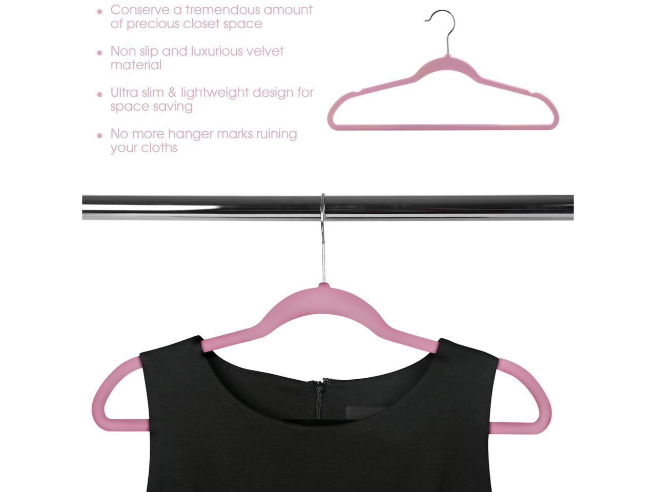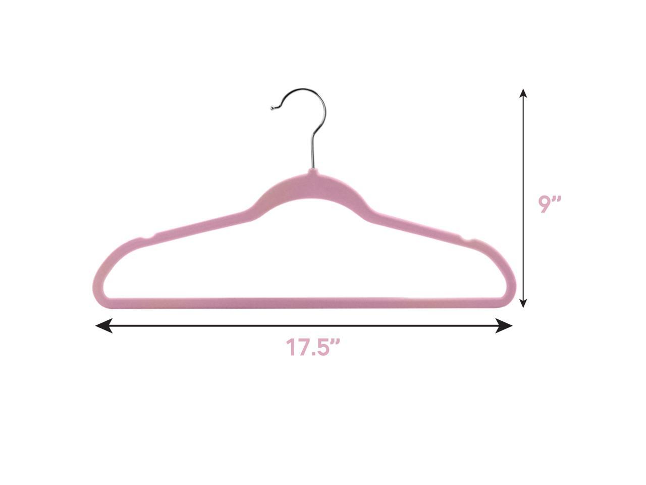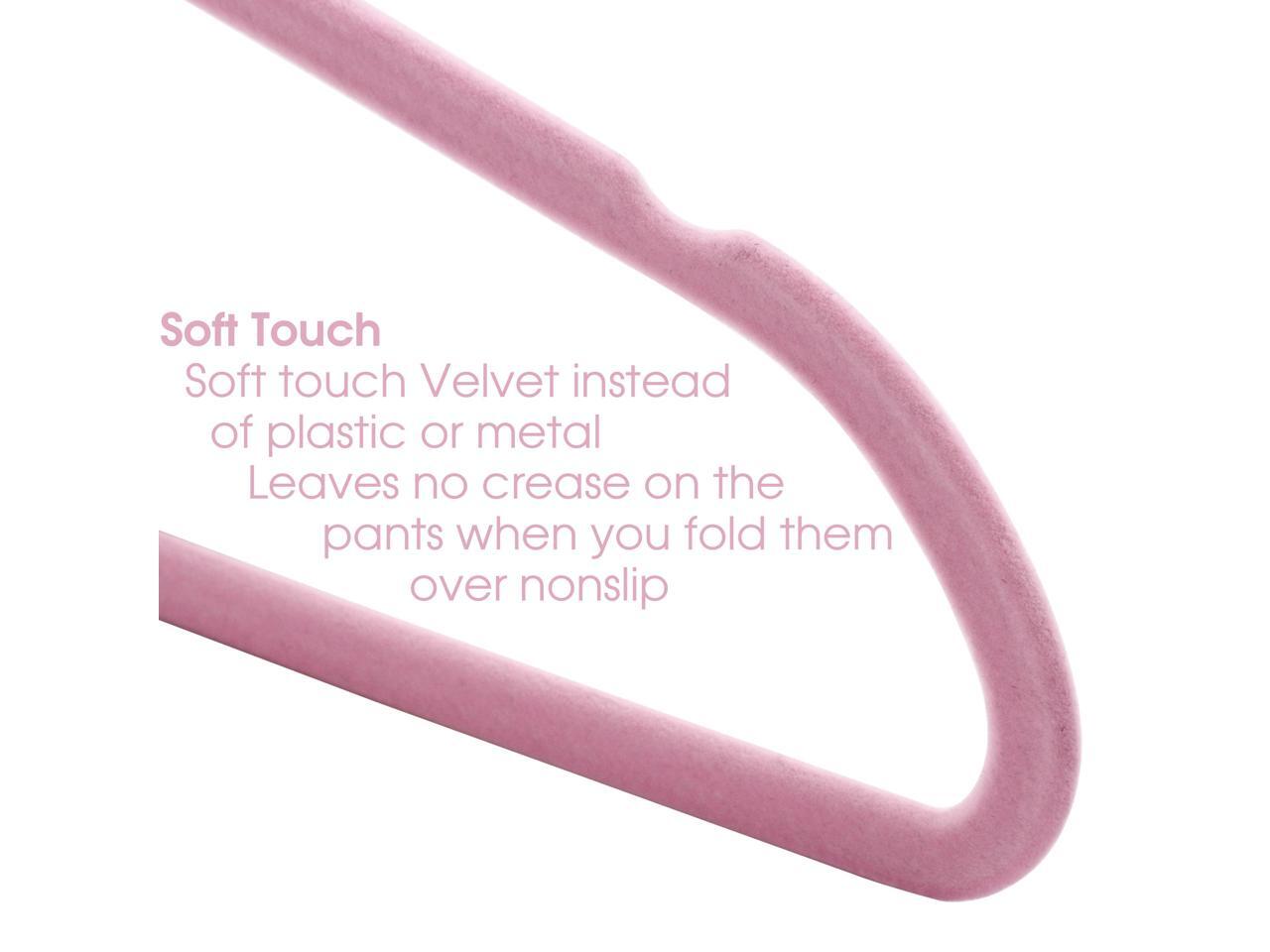 100 Piece Set of Velvet Slim Profile Heavy Duty Felt Hangers with Stainless Steel Swivel Hooks in Pink