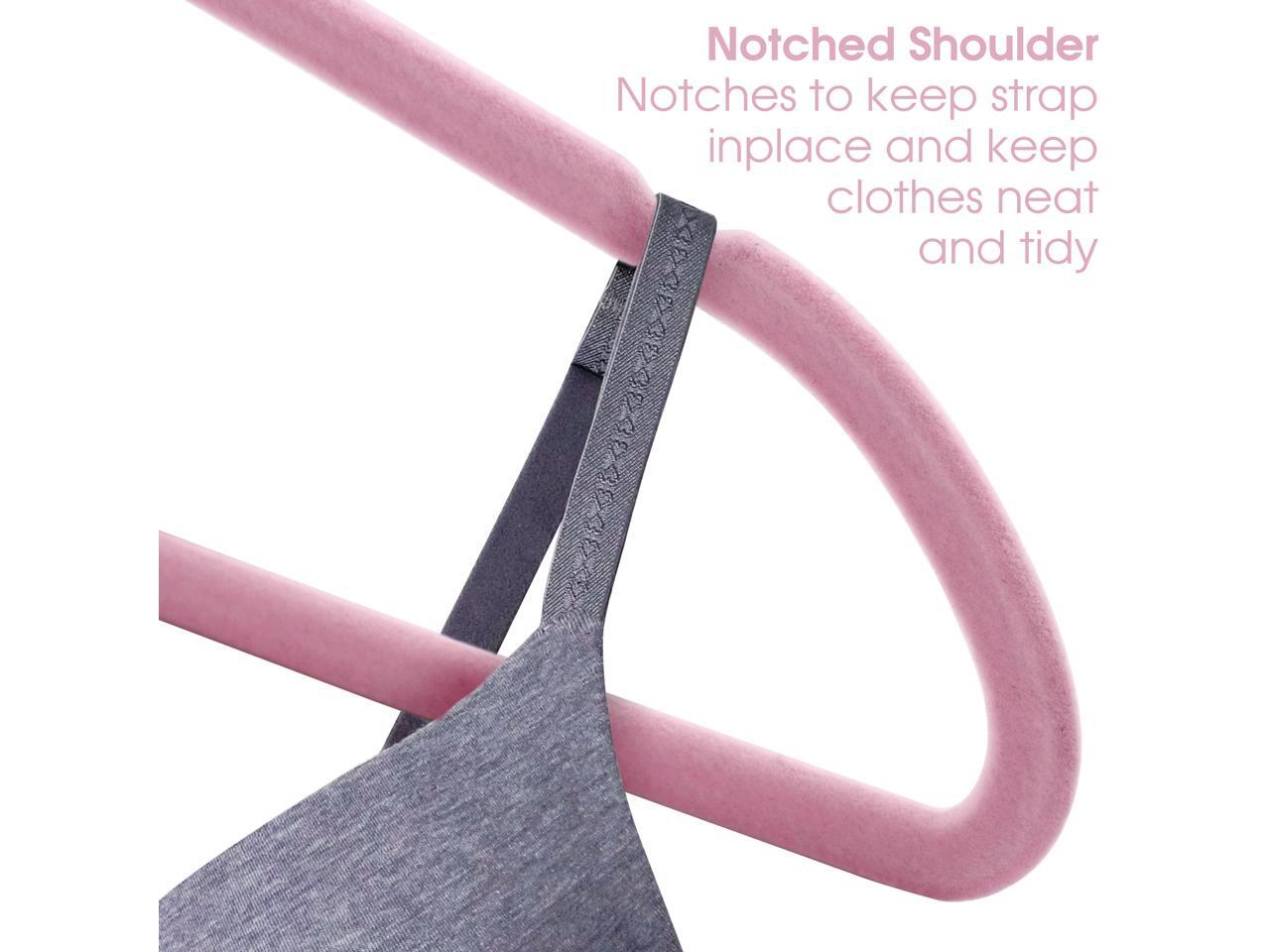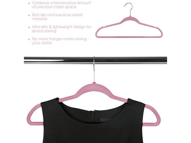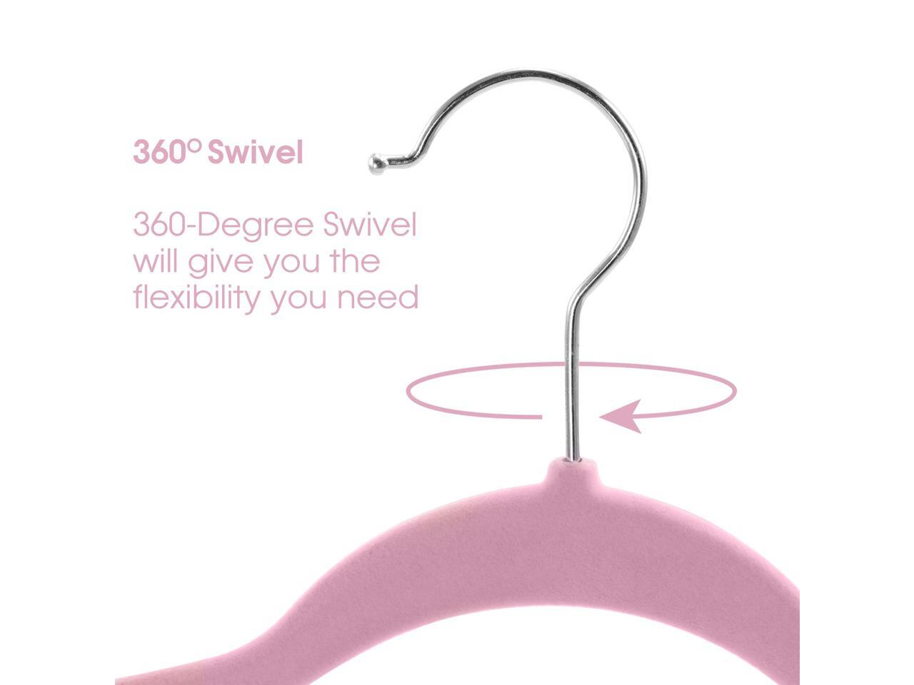 100 Piece Set of Velvet Slim Profile Heavy Duty Felt Hangers with Stainless Steel Swivel Hooks in Pink