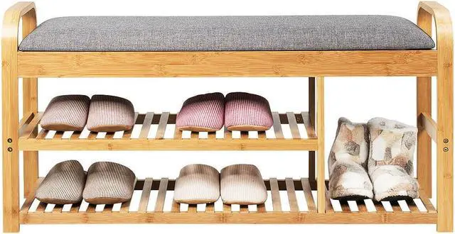 Thick and Comfortable Cushion: The cushioned seat is filled with a high-density sponge, which has good elasticity for sitting to change shoes. And covered with breathable grey linen, the large seat is comfortable for two people to sit together and will not show the dirt.