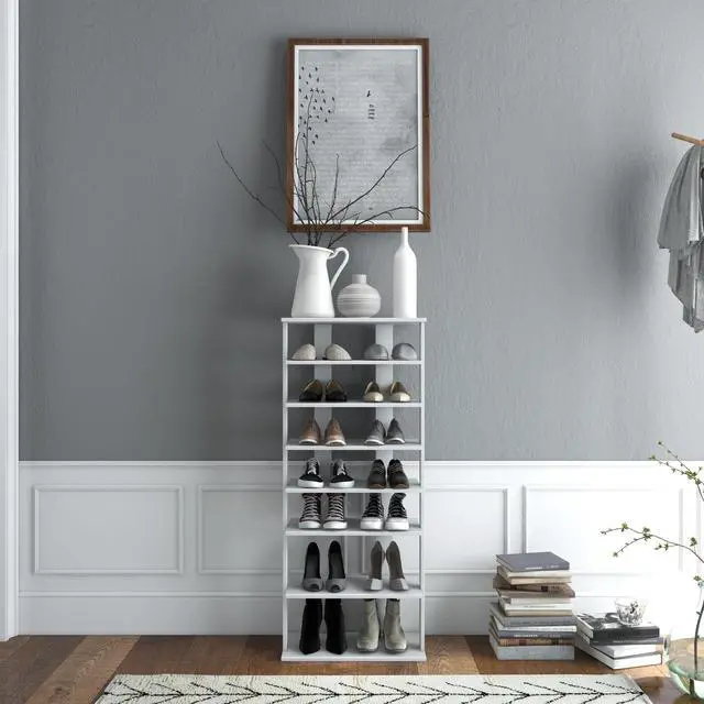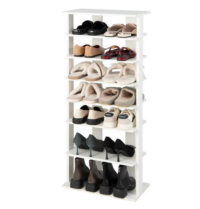 7-Tier and Double-Row Rack: This vertical shoe rack helps to keep your entryway away from messes. Double rows of this 7-tier shoe rack provide ample storage spaces for more pairs of shoes, making them ordered. What's more, the open design allows you to take your shoes quickly and easily.