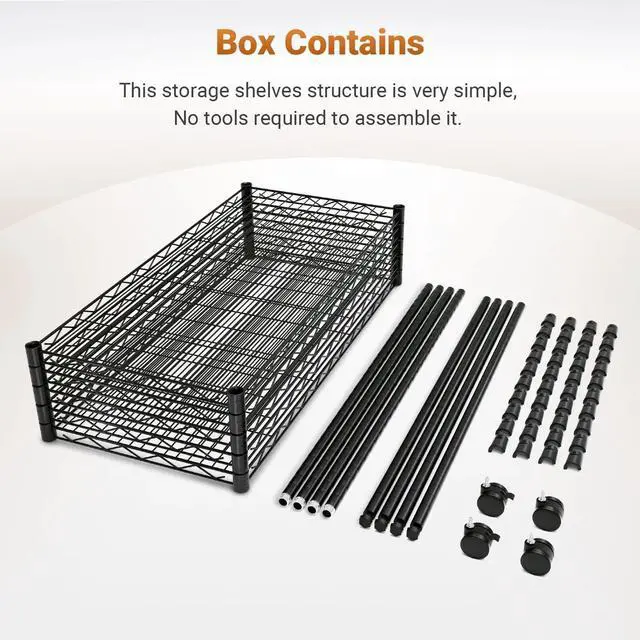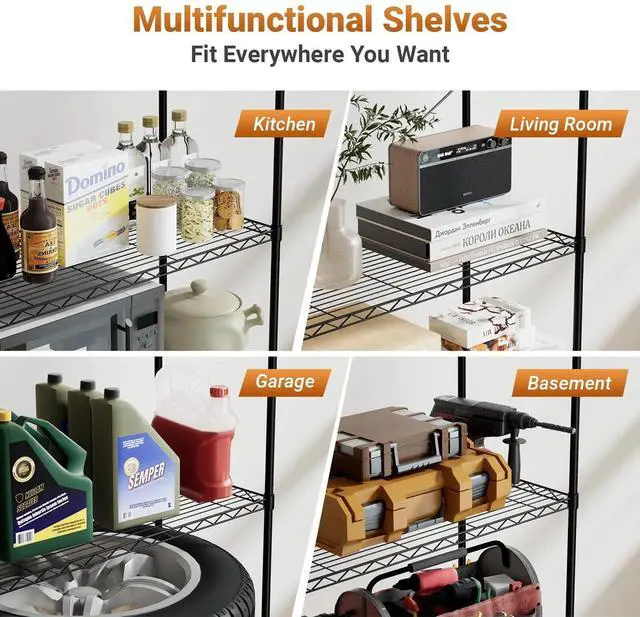 Heavy-Duty Load Capacity: Each shelf holds up to 250 pounds, evenly distributed; supports up to1250 pound total weight capacity