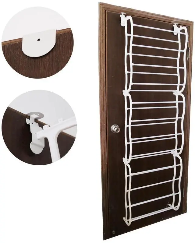 * DURABLE WHITE RESIN CONSTRUCTION:The heavy duty white resin construction features a smooth finish with wide sturdy hanging hooks to protect your shoes and your door.