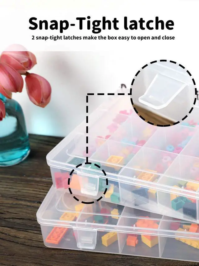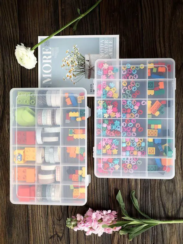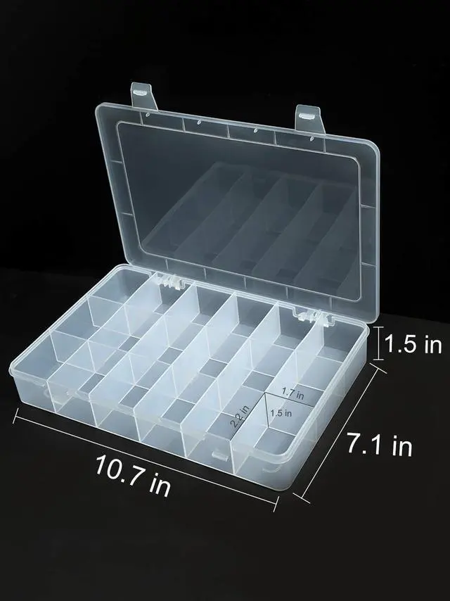 18 CompartmentsThe size of Grids is 1.7L x 2.2W x 1.5H,,enough to store your small