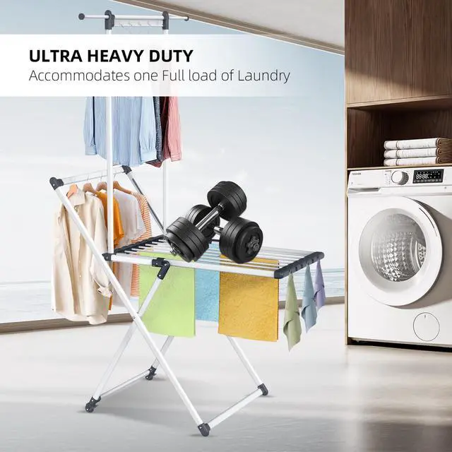 Clothes Drying Rack, Foldable Laundry Rack for Indoor Outdoor, 10pcs Sock Clips, Collapsible Space-Saving Drying Rack for Clothes Towels Dolls, White