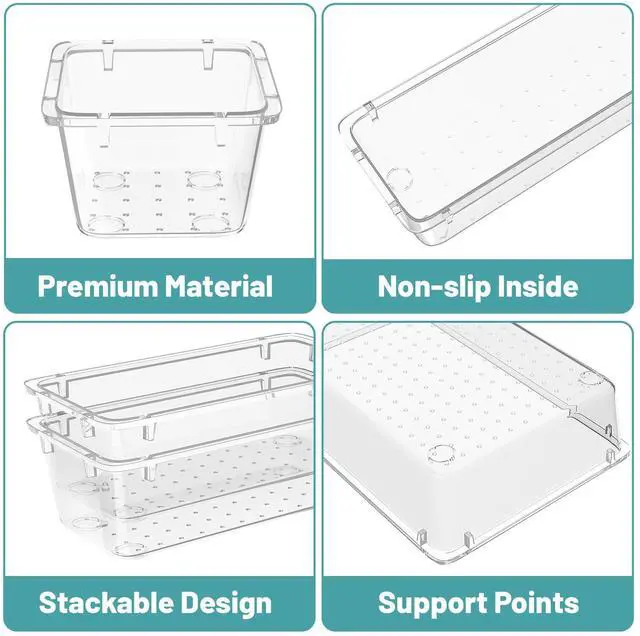 2. Durable Design: This desk drawer storage bins are not easy to break, the material is more durable for a longer service life, and the color transparent design enables you to more easily see the stored items.