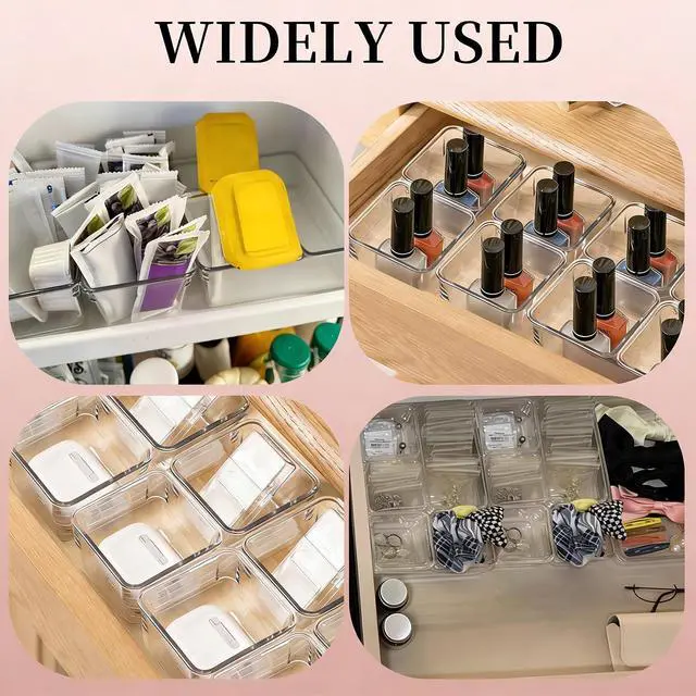 Compact and Stackable Design: Each clear container dividers measures approximately 3 x 3 x 2 inches, offering just the right size for small items while being stackable to save space and enhance organization