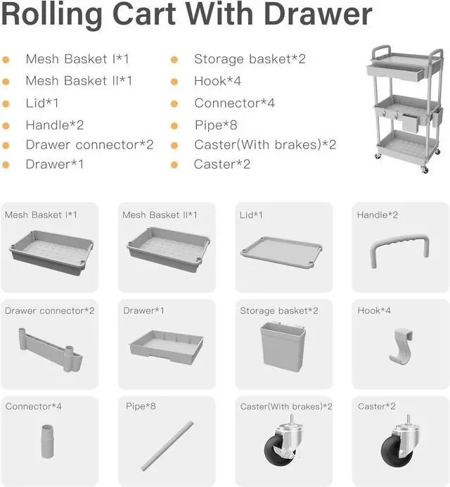 | Accessory | 1 Drawer,2 Cups,4 Hooks,4 360° Wheels |