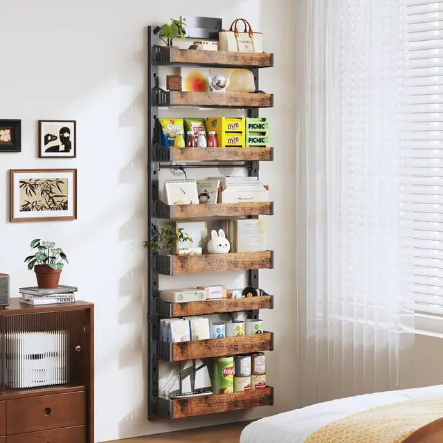 Over the Door Organizer with Adjustable Wood Baskets, Hanging or Wall Mounted Spice Rack for Pantry Door Organization and Storage in Kitchen, Closet & Bathroom