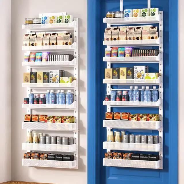 8-Tier Over the door organizer, Heavy Duty Metal Pantry Organizer and storage with Adjustable Baskets, 2-in-1 Hanging or Wall Mounted Shelf for Kitchen, Bathroom, Laundry Room-Large spice rack