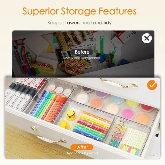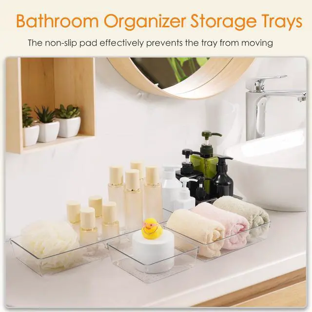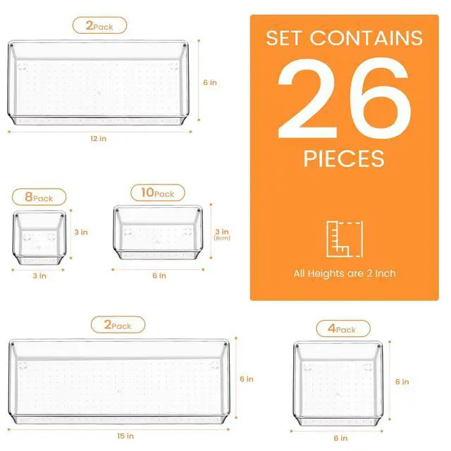 Criusia Drawer Organizer, 26 Pack Clear Plastic Drawer Organizer Bins, Versatile Organization and Storage Trays for Kitchen, Bathroom, Vanity Makeup and Office