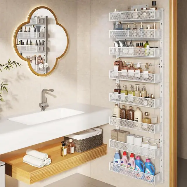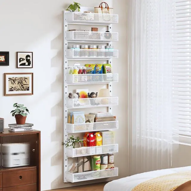 Pantry Door Organizer with Mesh Baskets, Over The Door and Wall Mounted Adjustable Spice Rack, Hanging Storage Organizer for Kitchen, Bathroom, Bedroom, and Nursery