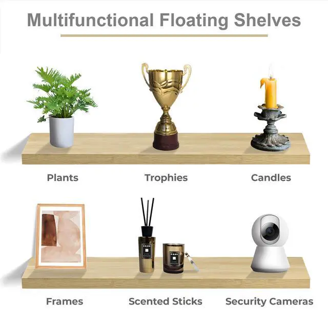 Does your home crave style and function? Add visual interest and dimension with floating shelves! Display charming showpieces, decorative items, and other prized possessions while offering functional storage with Sorbus Floating Rectangle Shelves. Add character and warmth to any modern or traditional interior with beautiful rectangle-shaped faux wood featuring a smooth matte finish. This versatile set can be installed virtually anywhere! Fill in empty wall space above a desk, fireplace, entryway, vanity, between windows, and so much more! Take to the walls and turn your prized possessions into true conversation pieces. Floating shelves are as much a piece of art as practical storage. Create a conversation in the living room by adding shelves vertically, staggering near the fireplace, or hanging between two windows to showcase artwork, trophies, etc. Revamp bathroom walls while displaying toiletry essentials, candles, or fresh flowers to create a spa-like retreat. Exhibit family photos gallery style in a long hallway or spice up your kitchen by organizing seasonings, spices, and jars. The possibilities are endless! Arrange and display your favorite small objects with a sturdy design that is easy to install. Shelves attach firmly to the wall without visible support and are easy to install. Minor assembly is required and they easily wipe clean with a dry cloth. Hardware INCLUDED. Bring charm to a new home, first apartment, or condo with a decorative housewarming gift for a blank wall!