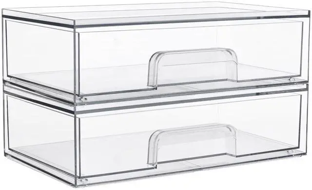 Vtopmart 2Pack Stackable Clear Plastic Storage Drawers, Organizers Bins for Eyeshadow Palettes, Cosmetics, and Beauty Supplies,Ideal for Vanity, Desk, Office Organization