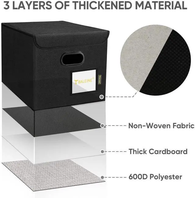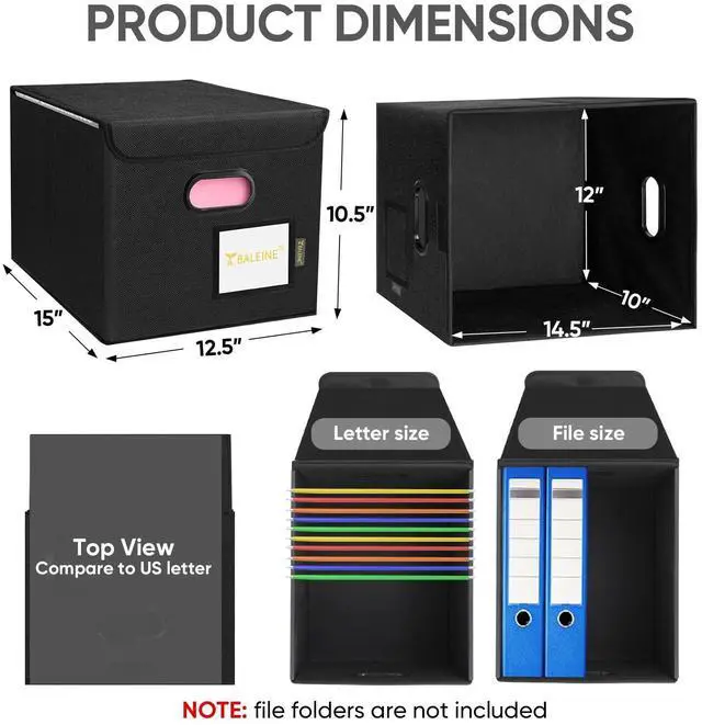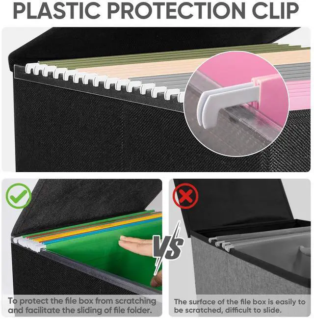 Introducing our Stylish & Functional File Storage Box, perfect for both letter and legal size files. With its smooth PVC slide rails, accessing your files has never been easier. Crafted from high-quality polyester fabric and reinforced with thick cardboard, this box not only protects your important documents but also adds a touch of elegance to any room. The transparent label slot ensures quick content identification, while its collapsible design and sturdy handles make for easy storage and transport. Measuring 15x12.5x10.5 inches, it's ideal not just for documents, but also for bills, school supplies. Enhance your organizational efficiency with this versatile and stylish file storage solution.