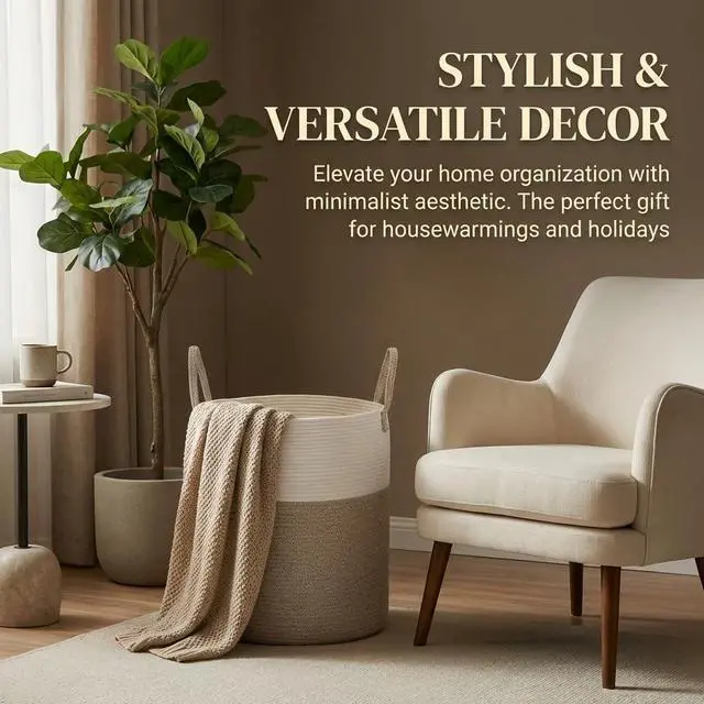 Whether you need a toy box for kids, a rope basket for blanket storage (easily holding 3 to 5 throws), or a laundry sorter for efficient organization, our product has you covered. Enhance your living room, kids' room, or nursery decor with this elegant and practical storage solution that stands up straight without tipping.