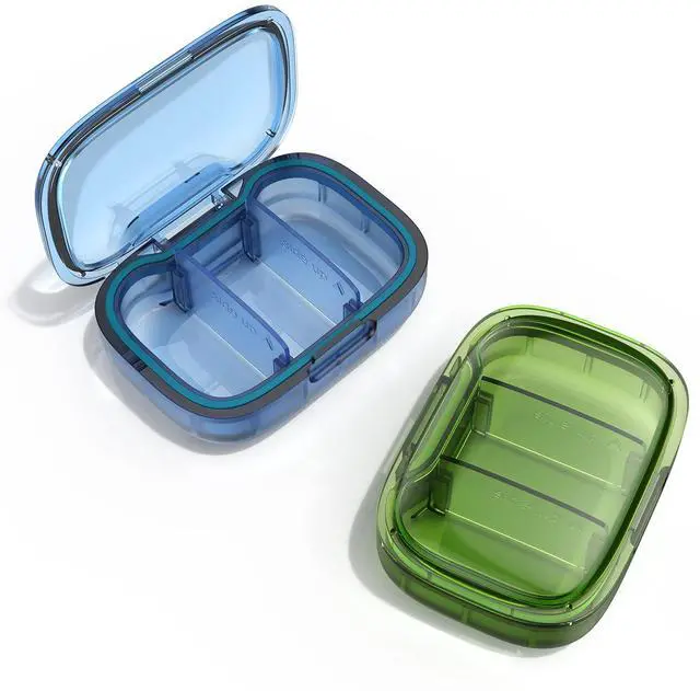 2 Pack 3 Compartment Small Pill Box, Moisture Proof Case, Travel Organizer for Pocket Purse, Daily Portable Medicine Vitamin Container, Fish Oil and Supplement Storage