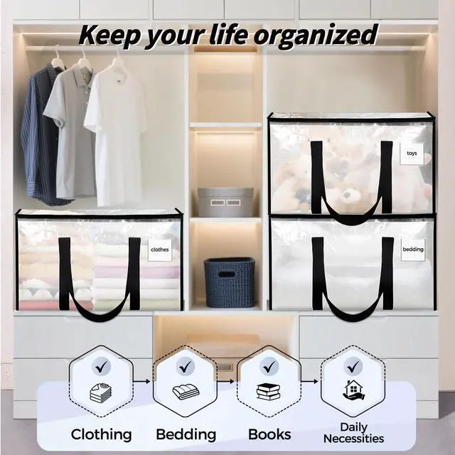 8 Pack Extra Large Heavy Duty Moving Bags, Clear Storage Bins with Lids, Reinforced Handles & Heavy-Duty Zippers Moving Boxes Storage Bags Totes for Clothes Packing, Dorms, College Supplies, Clear