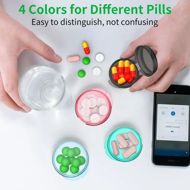 4pcs portable pill box with different colors, made of high quality plastic PP material, they are odorless, BPA free and moisture-proof, safe and great for medical use.
