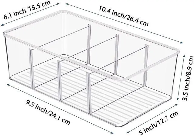 There are 3 removable dividers in each food storage organizer bin, making it easy to separate and organize your items, you can quickly see and grab what you need.